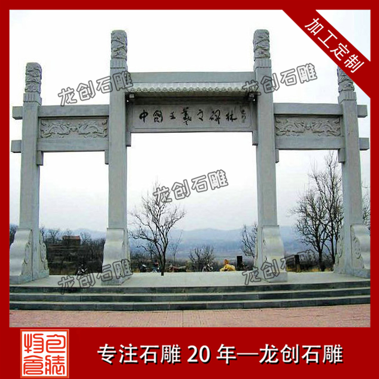 2、現(xiàn)代石雕牌坊要注意和實(shí)地環(huán)境的結(jié)合。現(xiàn)代化的石雕牌坊建筑可以是在休閑區(qū)域,也可以是在商業(yè)廣場,還可以在景區(qū)內(nèi)建造,常見的就是在仿古街的入口處修建石雕牌坊,既能夠體現(xiàn)古色韻味又能夠吸引游人的關(guān)注。如村莊牌坊的修建,就要和村莊的風(fēng)俗文化相結(jié)合,只有這樣才能和當(dāng)?shù)丨h(huán)境文化融為一體。無論是在哪里進(jìn)行建造石雕牌坊,一定好和當(dāng)?shù)氐沫h(huán)境進(jìn)行有機(jī)的結(jié)合,這樣才能讓建筑和環(huán)境融為一體,才能讓建筑為周圍的景色帶來亮點(diǎn)。