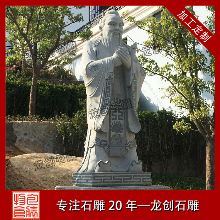一般比較常見的石雕孔子像有比較簡單的頭像,也有站姿的石雕像,基本上站立姿態的石雕像選擇性更遭到人們喜歡,有手里握著書卷拿在胸前,一手背在身后,抬頭挺胸,目光瞭望的石像,也有將雙手交叉并在胸前,可是咱們能夠看到交疊的手是不顯露大拇指的,標志著謙恭有禮,而四指并攏,也代表著四海之內皆兄弟,有著友愛、友誼的標志意義。