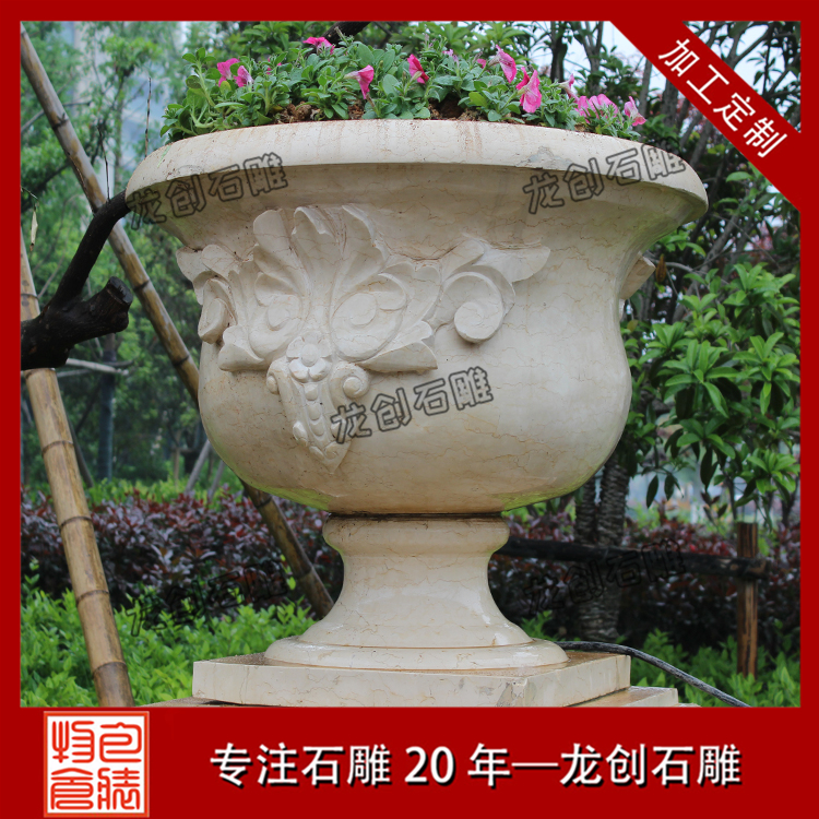 石雕花盆為什么那么受人們喜愛呢?石雕花盆擺放有哪些作用呢?原因就是石雕花盆不僅能靈活移動,操作方便,還有很好的裝飾效果。石雕花盆質地堅硬致密、強度高、抗風化、耐侵蝕、耐磨損、吸水性低,鮮明的色澤還能保存百年以上,顏色美觀。 石雕花盆作為新型的花卉應用形式,擁有其它花盆無法達到的特定優勢,與花壇相比,石雕花盆靈活,大部分都可以移動。