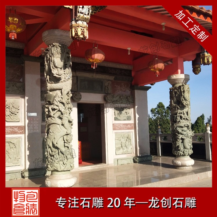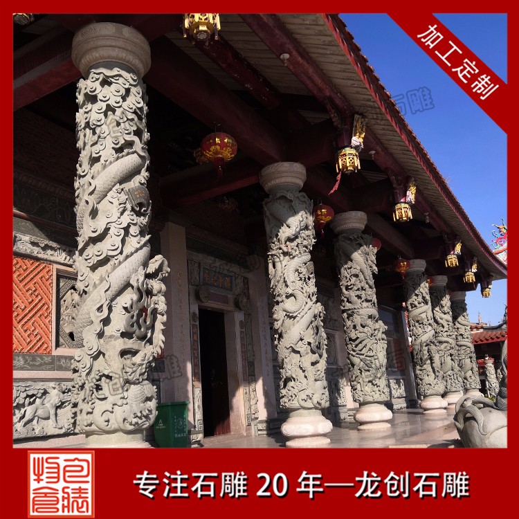 常見寺廟龍柱的制造石材有青石、白石以及其他花崗巖石料,如果雕工要求很復雜的,一般是以青石為原材料,青石的石料單價也要貴很多。做工簡單的,則一般建議用普通的白石即可。普通的白石龍柱會比較便宜,一般三四萬塊就能買到一對合適的3米高龍柱,以浮雕技藝為主。而真正價格較高的龍柱則一般是青石龍柱。龍柱一般有單龍和雙龍之分,雙龍的略貴一些,單龍的便宜一點。龍柱上面除了雕刻龍外,還會雕刻很多其他圖案。中華民族的圖騰是龍圖騰,中國人是龍的傳人,所以龍柱是無論什么國內宗教場所、公眾場所都會擺立的。