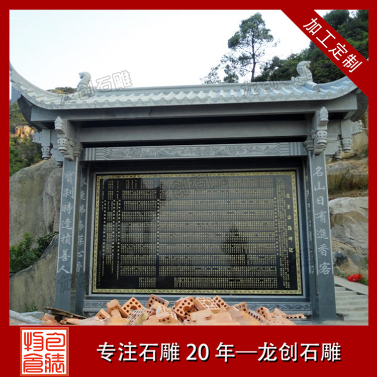 3.景觀裝飾與標識:石雕功德碑因其獨特的藝術風格和材質特性,常被用于寺廟、園林、廣場等公共場所的景觀裝飾,增添文化氛圍和審美價值。同時,它們也作為重要的標識性建筑,引導游客和信眾前往指定的地點。