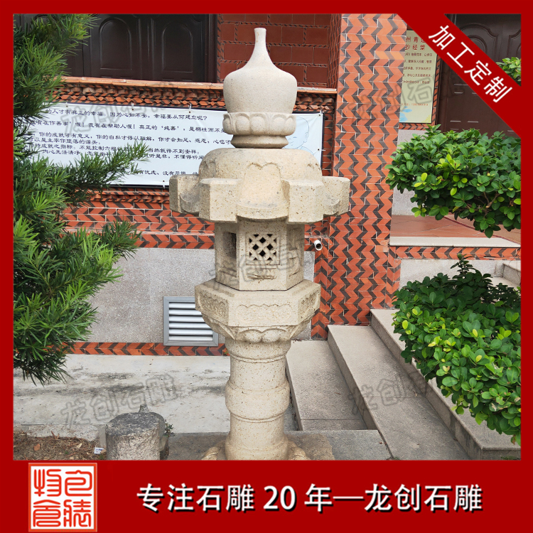 石燈籠最早雛形是中國國供佛時點的燈,也就是供燈的形式。這種形式經(jīng)朝鮮傳入日本,石燈籠是日本石文化的重要內(nèi)容之一,它為“立式光明”的意思。
