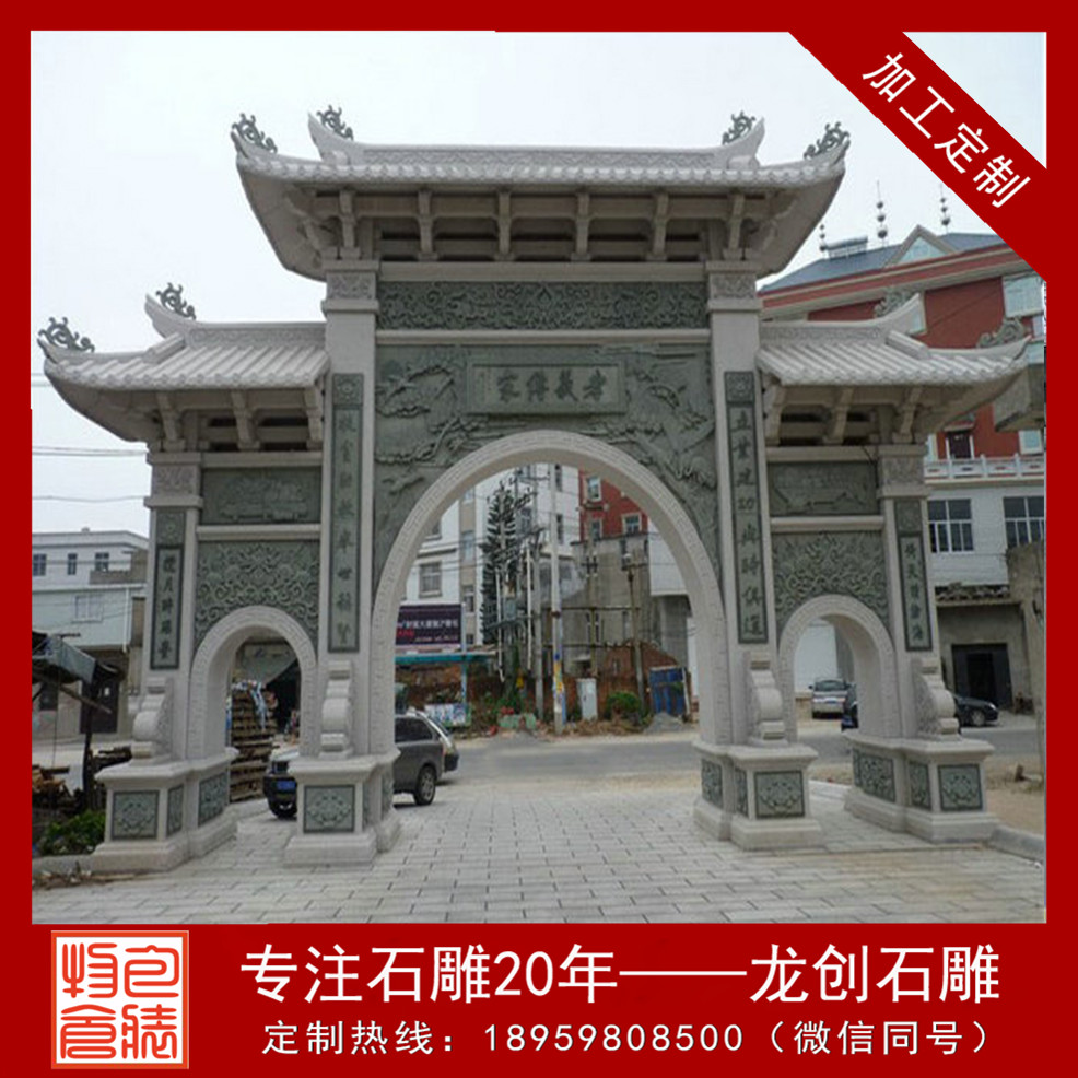 新農(nóng)村石雕牌坊的石材質(zhì)地堅硬,抗風(fēng)雨能力強,不會被腐蝕,隨著時光的變遷,和鄉(xiāng)村以及村民們一起經(jīng)歷,見證村子的變遷,是可以留給人們欣賞的一種財富。