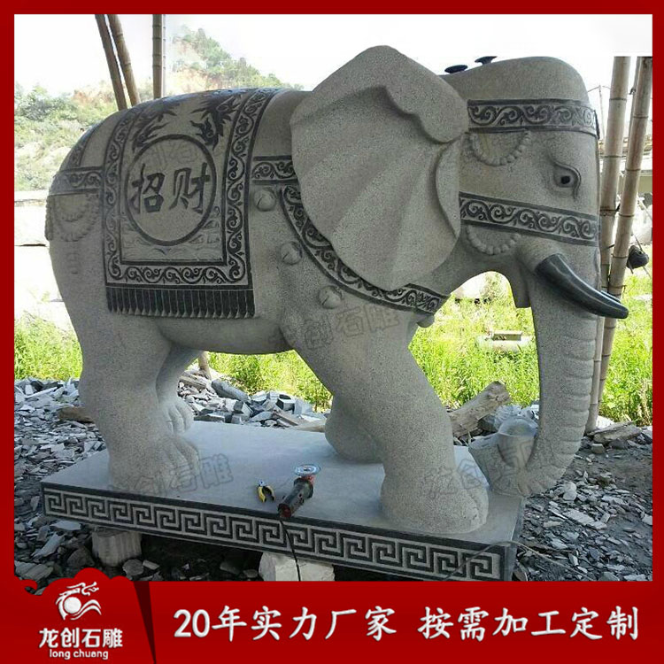 石雕大象在一些宗教廟宇的場(chǎng)所擺放很多見(jiàn),寺院的花崗巖石雕大象擺件通常會(huì)帶有明顯的宗教色彩,比如那些六牙石雕大象,90%都是擺放在寺廟中的。為什么這么說(shuō)呢?石雕大象本身是兩個(gè)牙齒的,如果做成六個(gè)象牙,那就是代表了佛教的六波羅蜜,是修行成道的六個(gè)法門。一對(duì)飽含佛教文化以及中華文明元素的花崗巖石雕大象,主要表現(xiàn)在以下幾個(gè)部位。首先是腳趾部分。這對(duì)大象的腳趾部分一改以往的腳趾貼地的做法,而是將腳趾王上挪移了一點(diǎn),這是因?yàn)樵O(shè)計(jì)時(shí)將大象腳站在蓮花臺(tái)上,帶有濃厚的佛教文化。大象的側(cè)身部雕刻的卍字符號(hào)是如來(lái)胸前的圖案,也是佛教文化中非常見(jiàn)的一種標(biāo)識(shí);第三是大象的象牙比實(shí)際的動(dòng)物大象多了4根,這六根象牙代表著佛教的六度,是到達(dá)西方極樂(lè)世界的六個(gè)方法。 象諧“祥”音,所以常有吉象之稱,適合擺放在家居別墅大門口,建筑小區(qū)門口、酒店別墅、寫字樓等各種場(chǎng)景擺放。