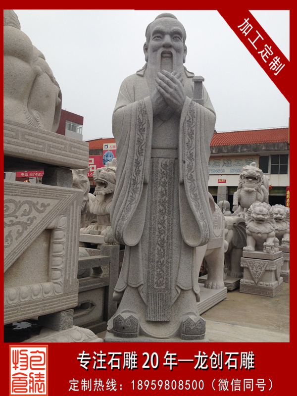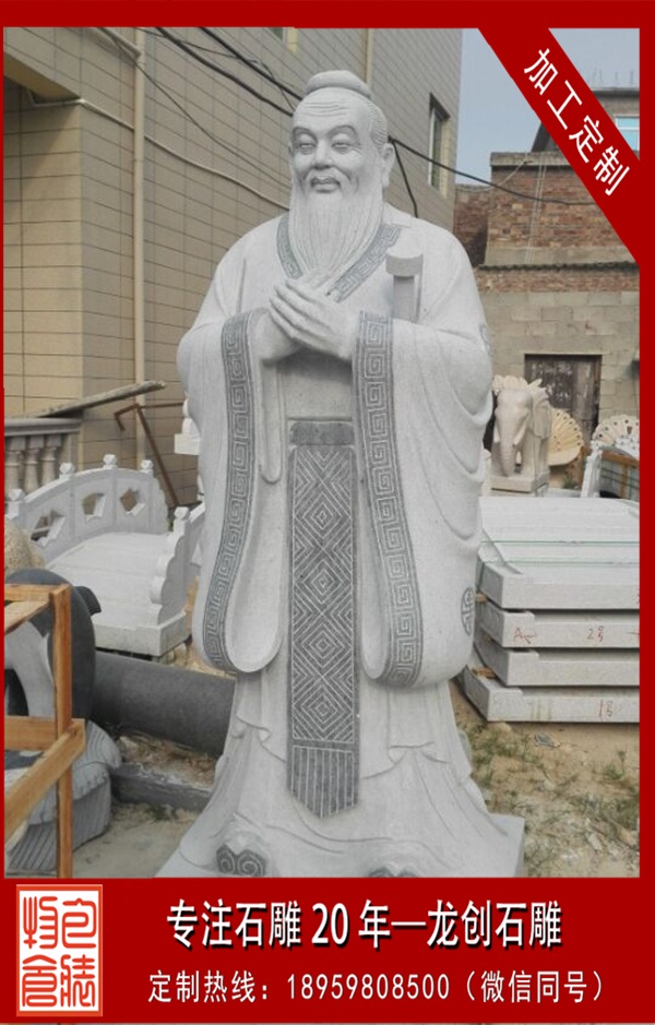 石雕孔子像是指用天青墨玉、霞玉、緬甸玉、漢白玉、墨玉、佘太玉、砂巖、大理石、花崗石、銀灰白石、雪花白等石材玉料雕刻的孔子像。石雕孔子就是孔子雕像,又名石雕孔子行教像,孔子標(biāo)準(zhǔn)雕像。