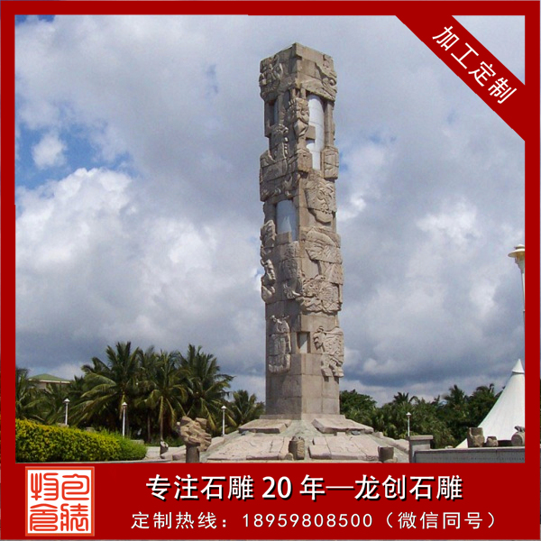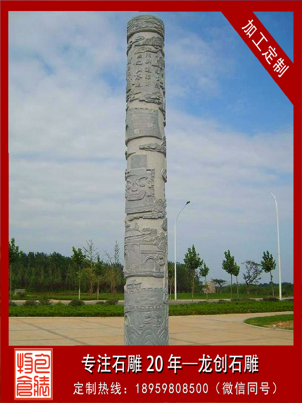 石雕文化柱也被稱為石雕圖騰柱或者文化景觀柱以及石頭文化柱等,當石雕文化柱以單體形式出現時一般是作為城市廣場的主雕而放置在廣場的視覺中心位置,尺度高大醒目,空間領域覆蓋整個廣場。下面由石雕文化柱廠家-惠安龍創(chuàng)石雕工藝有限公司對石雕文化柱圖片及文化柱的作用做個介紹。